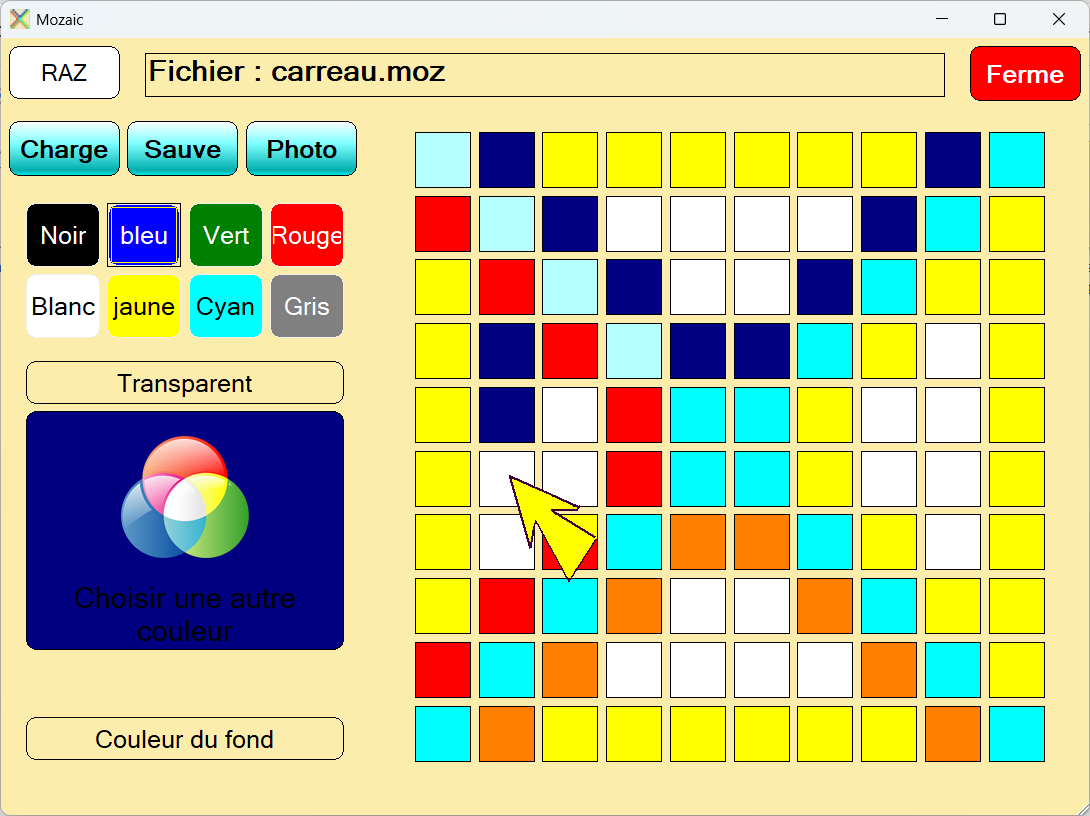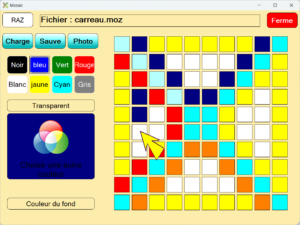 mozaïc est un programme qui a comme objectif principal : se faire plaisir en construisant des dessins colorés.